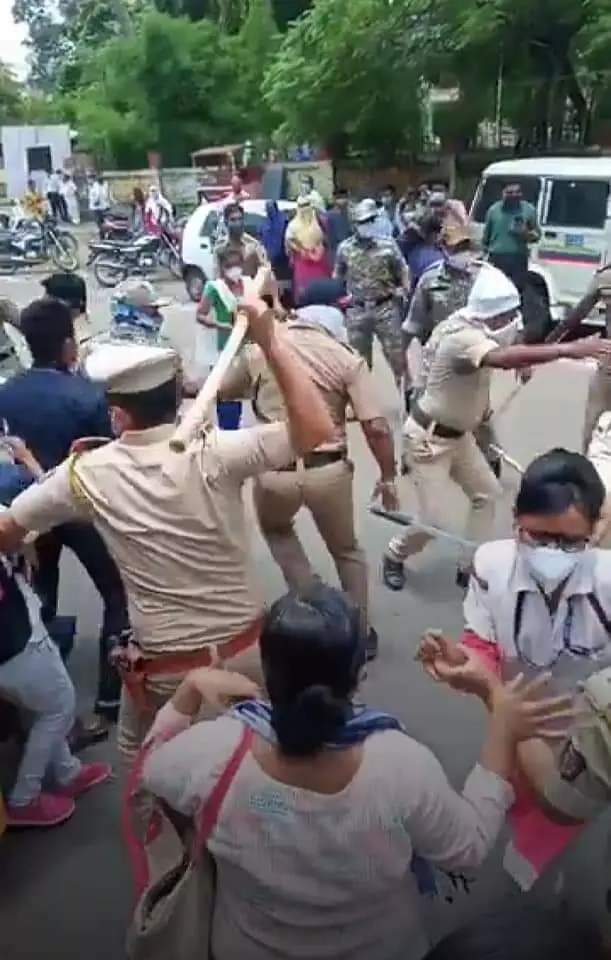 यावेळी महिला कंत्राटी आरोग्य कर्मचाऱ्यांनी त्यांचा ताफा अडवण्याचा प्रयत्न केला,असता त्यांच्यावर पोलिसांकडून लाठीचार्ज केल्या असल्याचा प्रकार समोर आला आहे.